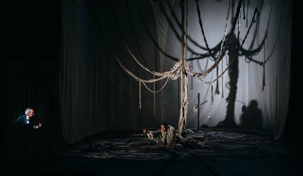 Il ne s’agit pas ici d’un simple monodrame conventionnel, puisque le metteur en scène est présent sur scène pour accompagner le comédien à la guitare, en improvisant sur une trame musicale. Ce dispositif implique une inspiration réciproque et une écoute mutuelle, une démarche proche du jazz, en l’absence de partition figée.